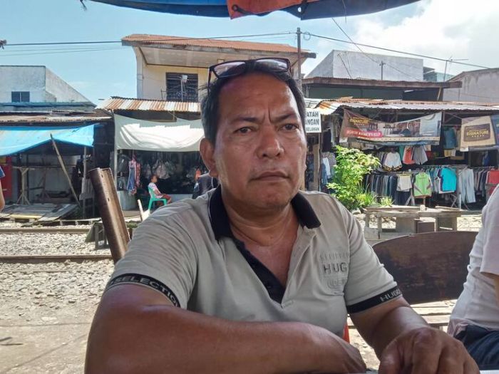 Warga sekaligus tokoh pemuda asal Belawan, Erwin Librandi Tambunan, saat diwawancarai Mistar. (foto:deddy/mistar)